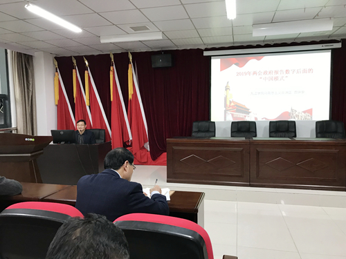 随后,九江学院马克思主义宣讲团曹钟安作了以《2019年两会政府报告数字后面的“中国模式”》两会学习专题辅导报告,带领全院老师深入学习了今年两会精神。曹钟安在宣讲习总书记六下团组有关扶贫讲话的“五要”:一要坚定信心不动摇,二要咬定目标不放松,三要整治问题不手软,四要落实责任不松劲,五要转变作风不懈怠。