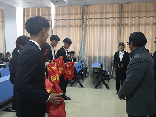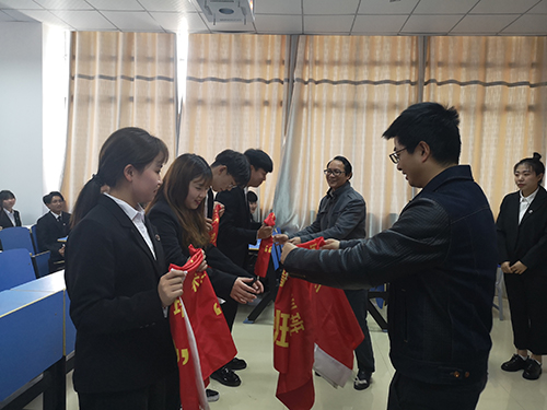 仪式最后,沈杨副书记和刘元明老师为骨干培训班四个班班长授予班旗。