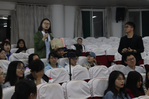 随后,连续两年获得读者之星称号并排名前十的陈晶晶同学上台与观众交流。她向大家介绍了自身的学习经历,读书给了她希望和力量并由此改变了她的生活轨迹。她幽默的语气、独特的见解让大家如沐春风、感同身受。互动环节,场内气氛热烈,大家争先发言。