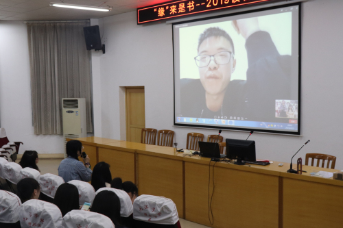 第三位分享嘉宾是已经毕业的陈学斌学长,现场通过视频连线与之对话读书那些事儿。陈文斌同学曾担任我校浪井文学社编辑部部长、图书馆《濂溪》馆刊编辑,也是多届读者之星。他与大家分享了读书的方法、收获与乐趣,并为现场的同学们答疑解惑。他表示不仅在校园里要与书为伴,毕业后乃至人的一生中都要孜孜不倦的读书,读书是无止境的探索。