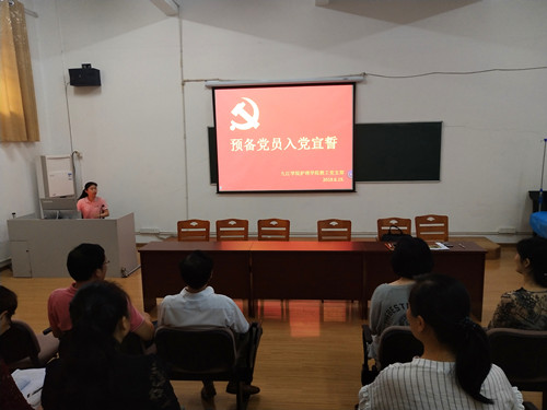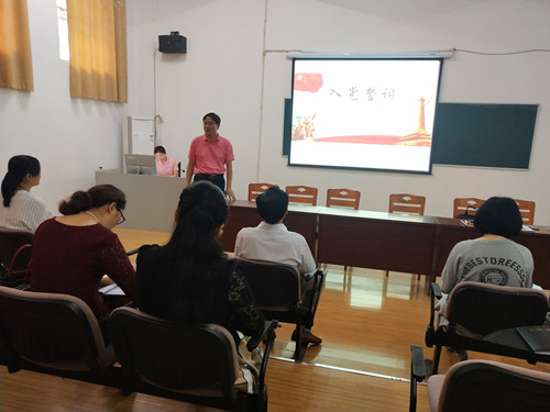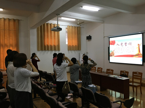 6月19日下午,护理学院教工党支部在望杉楼104教室举行了预备党员入党宣誓仪式,教工党支部书记朱莹莹同志出席并主持此次宣誓仪式。