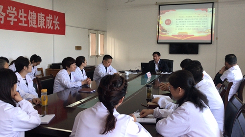 学习会上,院长贾宗林同志为全体党员上了一堂《不忘医者初心使命,牢记师生患者健康》为主题的党课,贾院长从新时代共产党人的“初心”和“使命”是什么、基层医务人员的初心使命是什么、作为一名新时代的党员,怎样践行不忘初心、牢记使命三个方面结合学校和医院当前情况进行了讲授,同时要求大家要以“不忘初心、牢记使命”主题教育为契机,在工作中不忘医者初心,牢记师生健康使命。鼓励大家充分发挥党员的先锋模范作用,更好的为全校师生健康保驾护航。
