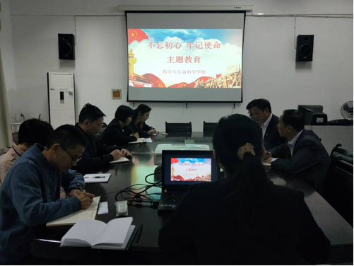 10月16日晚,药生学院于心远楼413会议室召开“不忘初心、牢记使命”主题教育,学院党委书记鲍海鸥主持会议,学院党委班子成员、各支部书记、支委参加会议。
