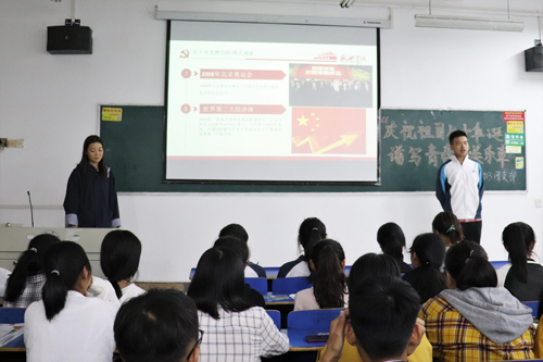团日活动中,A1911班团支书以幻灯片形式向同学们展示了建国以来祖国的历史性成就,同学们内心充满骄傲与自豪;B1921班的同学通过爱国知识问答,鼓励同学们了解祖国、热爱祖国,现场气氛十分热烈;A1913班团支书带领全班同学深情朗诵,一篇篇诗文触动了同学们的爱国情怀。