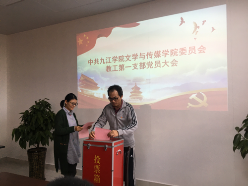 大会在隆重而庄严的国歌声中开始,大会主持人通报了到会党员人数,到会人数符合党章和基层党组织换届选举的相关规定,支部换届选举会议正式开始。首先,大会主持人报告了支部换届的情况,支部代表支委向支部全体党员做了工作报告,全面总结了支部的活动开展、自身建设等情况,全体党员对支委的工作给予了高度肯定,并充分酝酿了下一届支委候选人的初步人选。随后,工作人员宣读了选举办法和候选人名单,推选了监票人和计票人。在投票过程中,支部严格按照公平、公正、公开的原则,由监票人和计票人唱票并宣读结果。经党员大会无记名、差额投票,梅文斌、唐北华、鲍鲳、柯镇昌、吴雯雯、何智博六名同志分别当选为文传学院教工第一、二党支部委员。