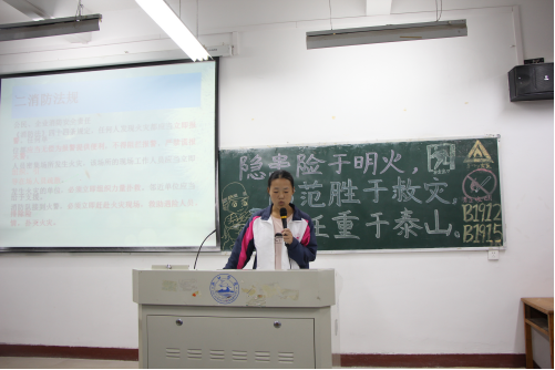 活动开始,由主持人向同学们介绍了本次活动的目的与意义,并通过PPT介绍了多种安全图标,播放了真人版微视频《宿舍消防》,让同学们在宿舍生活中可以更加重视消防安全。接着,通过击鼓传花、心有灵犀等游戏,让同学们了解了更多与消防安全有关的东西,娱乐的同时也学到了知识。随后,同学们进行了才艺表演,瞬间点燃了现场的气氛。最后,团支书在黑板上画出了消防安全的图标,同学们随之识图抢答,在一定程度上巩固了今日所学的消防安全知识。