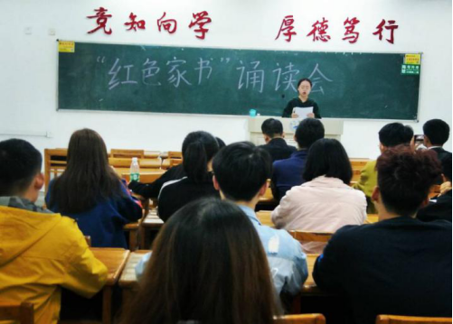 活动伊始,主持人介绍了《红色家书》的历史背景及深刻寓意,随后各成员踊跃上台。有同学分享了著名将领吉鸿昌在殉难前的赠别家书,在场的同学无不深感震撼。还有同学分享了夏明翰对他妻子郑家钧的家书,更是让诵读会气氛达到高潮。