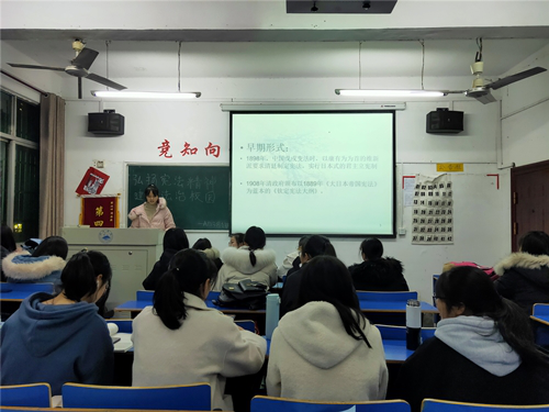 活动伊始,主持人通过ppt放映与口头解说相结合的方式向同学们介绍了宪法的深刻意义、地位以及一些关于宪法的小知识,让同学们对宪法与法治有了更加深刻的理解。接着,主持人列举了三个与宪法有关的典型案例,将宪法与我们的日常生活紧密联系起来,进一步提升了同学们对于宪法的关注度。活动最后,主持人向同学们讲述了弘扬宪法精神与爱国主义的关系,最后指出:懂法、守法即为爱国。