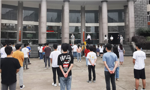 5月16日上午,政法学院在主校区香远楼前开展学生干部防疫工作培训演练,院党委书记高翔出席并讲话,此次培训由院党委副书记陈永钊主持,学生科团委全体老师和学生干部们参加了演练。