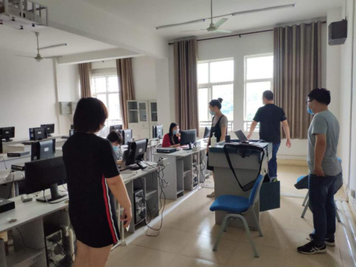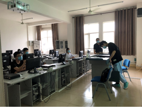 一大早,学院实训中心老师已提前来到实验室进行课前防疫消杀工作,并逐一为前来上课的学生进行体温检测和手足消毒。学院领导和教研科等职能科室人员根据课表,对实验室环境、座次安排、多媒体设备、教材配备等相关准备工作以及教师和学生的上课状态、线上线下教学内容的衔接等情况做了全面的检查。