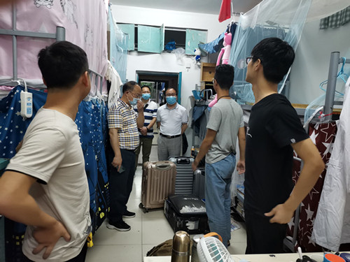 为深入了解返校学生生活、学习状况,保障疫情常态化下学生复学工作的顺利进行, 5月22日晚,基础医学院院长车向新、党委书记余朝阳、副院长许晓源来到学生宿舍,亲切慰问2018级返校复学学生。