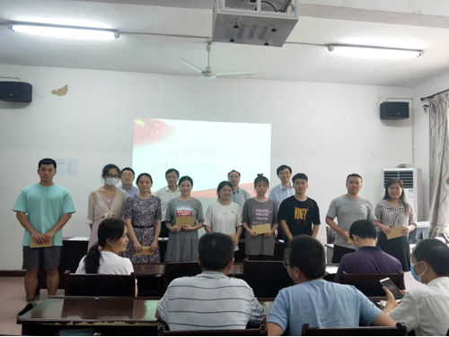 6月30日下午,在中国共产党成立99周年之际,药生学院在心远楼209会议室召开全体党员大会暨七一表彰大会,学院党委书记鲍海鸥、院长张小谷、副院长余敬谋、副书记邓海波及全体党员参加会议,会议由副书记邓海波主持。